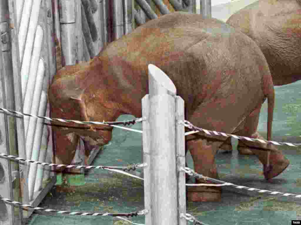 Tamer Mstislav Zapashny gives elephant cow Rani some wine as a preventative measure against cold