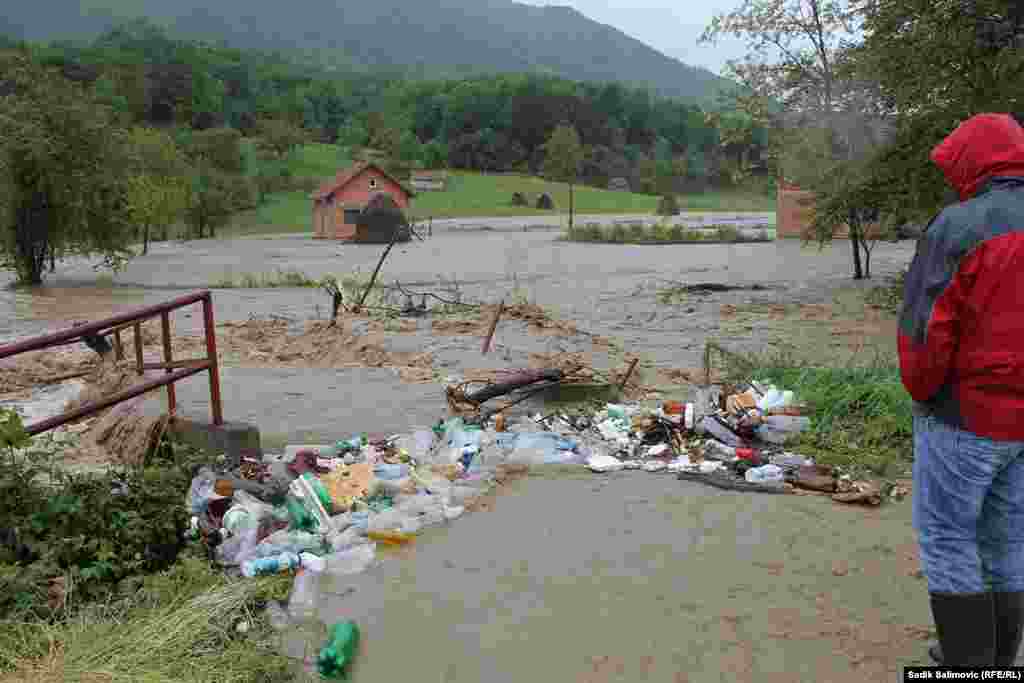 Obilne kiše prouzrokovale su izlivanje rijeka i na području Srebrenice. Na području općine Srebrenica obilne kiše uzrokovale su poplave. Rijeka Križevica se izlila i ušla u kuće u naselju Dugo Polje, kao i na lokaciji Soloćuša i Potočari. Stanovnici u naselju Dugo Polje su evakuirali i stoku. Službenici Civilne zaštite u Srebrenici od srijede prate stanje na terenu. RSE/Foto: Sadik Salimović