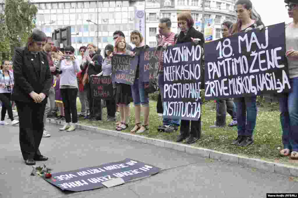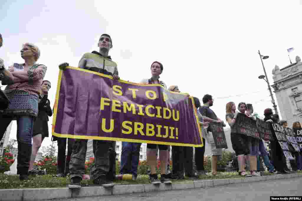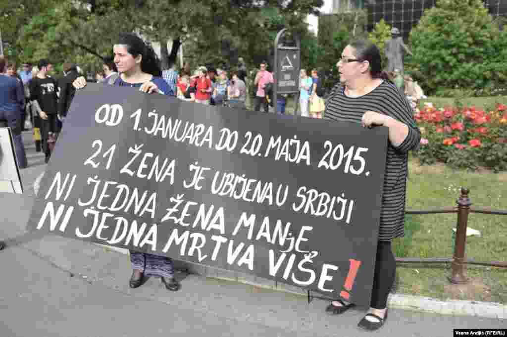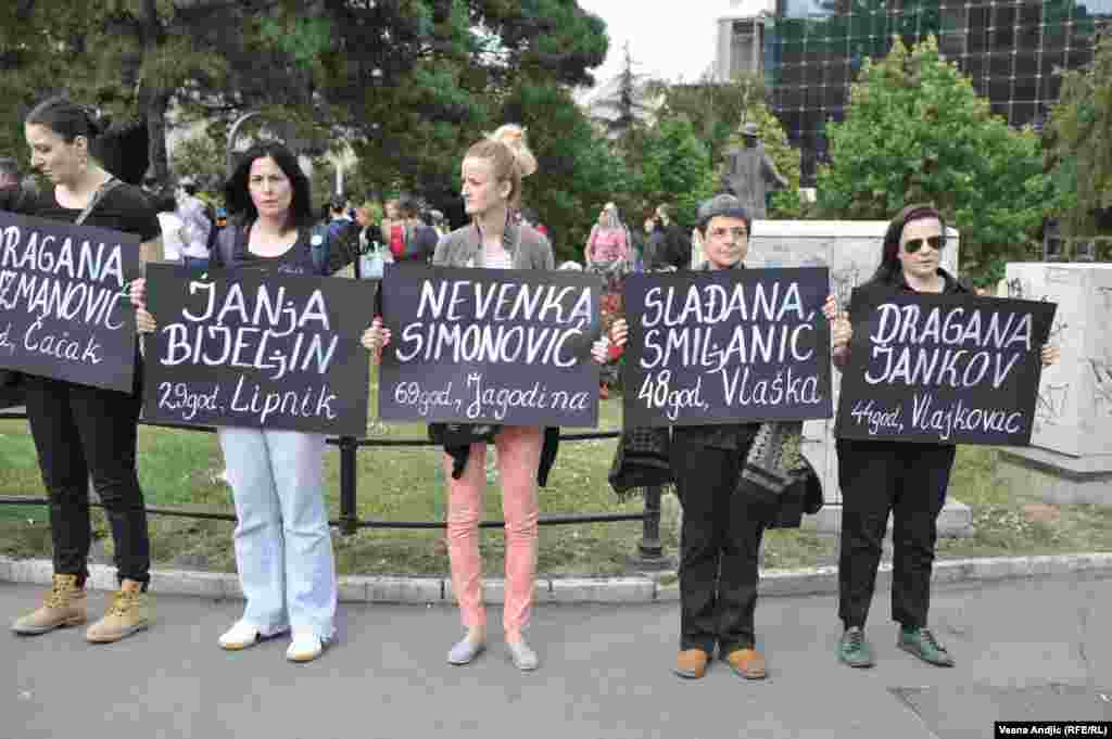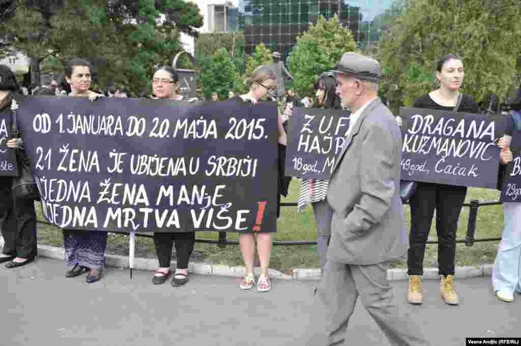 Članice Autonomnog ženskog centra, Mreže žena protiv nasilja, Žena u crnom i Kruga okupile su se u četvrtak popodne na platou ispred TC “Staklenac" u Beogradu kako bi skrenule pažnju javnosti i nadležnima na učestalo nasilje nad ženama u Srbiji