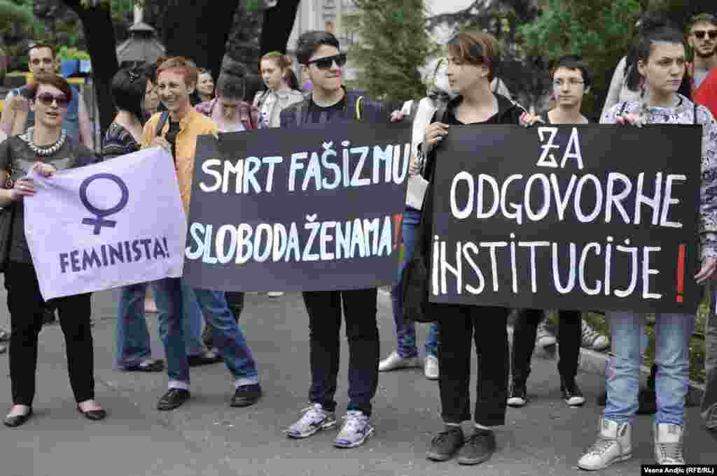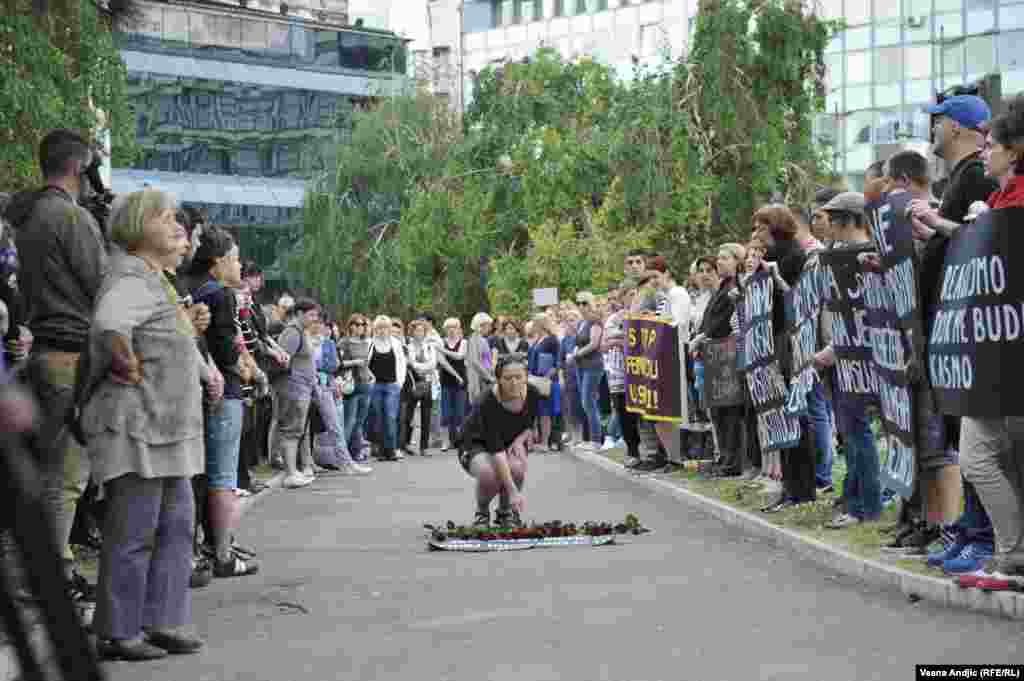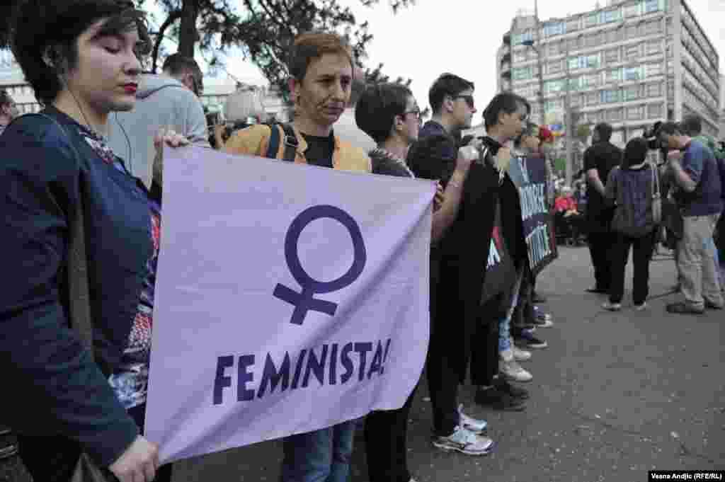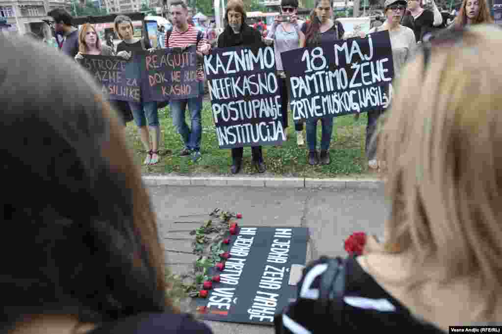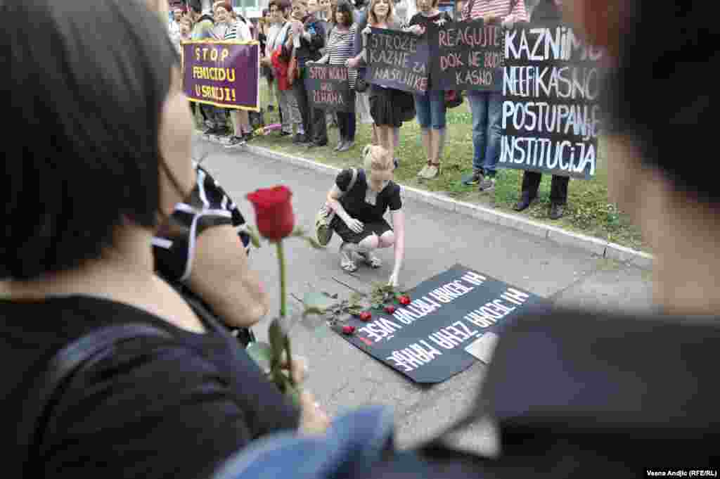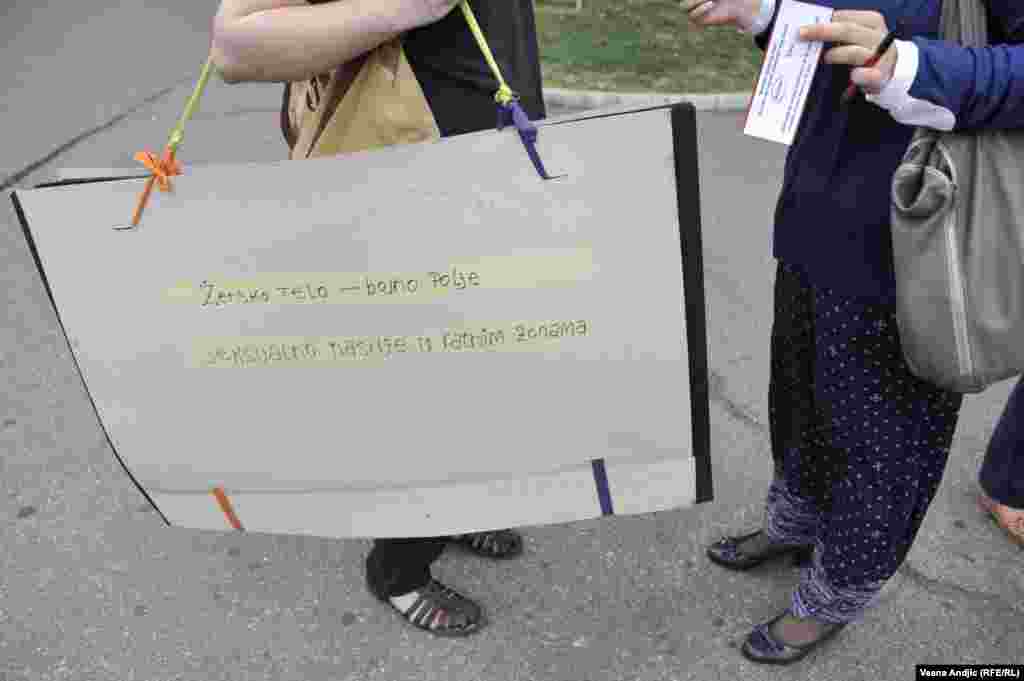 Članice Autonomnog ženskog centra, Mreže žena protiv nasilja, Žena u crnom i Kruga okupile su se u četvrtak popodne na platou ispred TC “Staklenac" u Beogradu kako bi skrenule pažnju javnosti i nadležnima na učestalo nasilje nad ženama u Srbiji