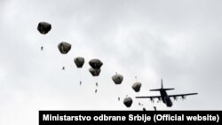Desant 120 padobranaca sa visine od 300 metara izveden je u 11 časova iz dva američka aviona C-130J Super Hercules na aerodrom Kovin.