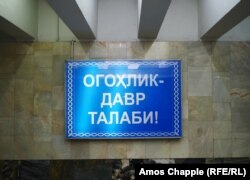 Dok je prijetnja nuklearnim napadom u Uzbekistanu polako izblijedila, novi strah od pošasti terorizma se ogleda u natpisima kao što je ovaj: «Svjesnost je preduslov modernog doba!«
