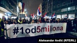 Organizatori protesta "Jedan od pet miliona" zatražili su od predsednika Srbije Aleksandra Vučića da građanima predstavi plan za Kosovo, navodeći da su oni adresa kojoj treba da se obrati, a ne "Brisel, Vašington, Moskva ili Priština".