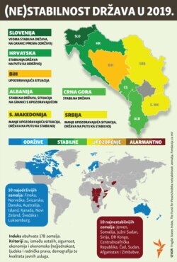 Istraživanje Fondacije za mir obuhvatilo je 178 zemalja po kriterijima koji uključuju: sigurnosna pitanja, ekonomiju i ekonomsku (ne)jednakost, ljudska i radnička prava, demografiju i kvalitet javnih usluga. Kako zemlja Balkana stoje na listi stabilnosti i samoodrživosti?