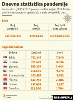 Zavodu za javno zdravstvo Federacije BiH prijavljeno je 2.211 uzoraka, od čega je 400 pozitivno na SARS-CoV-2.