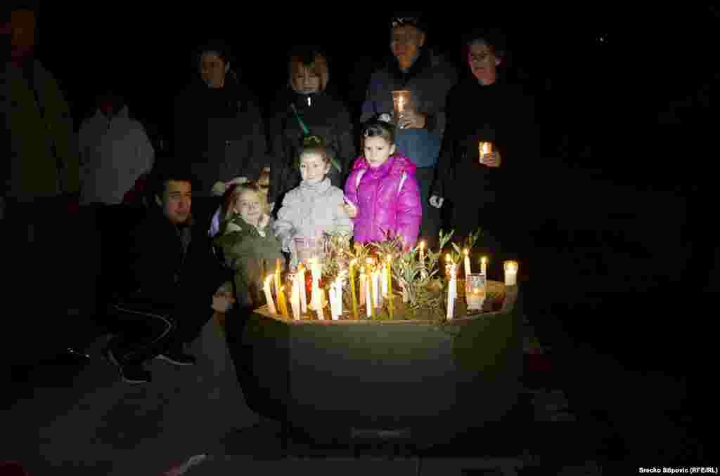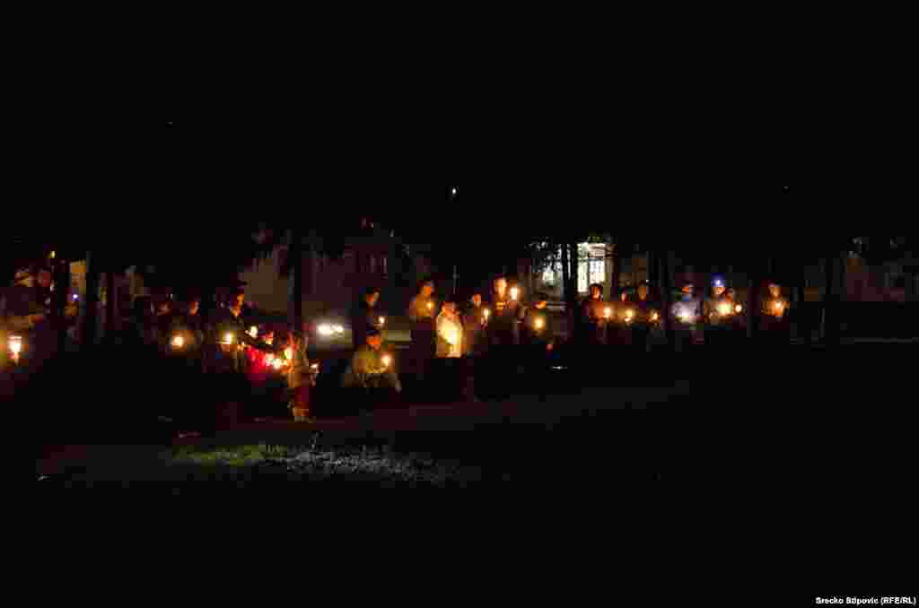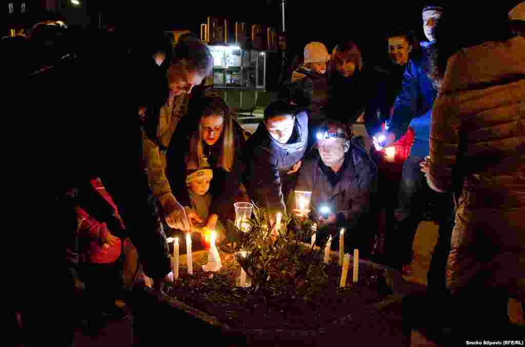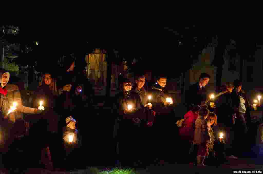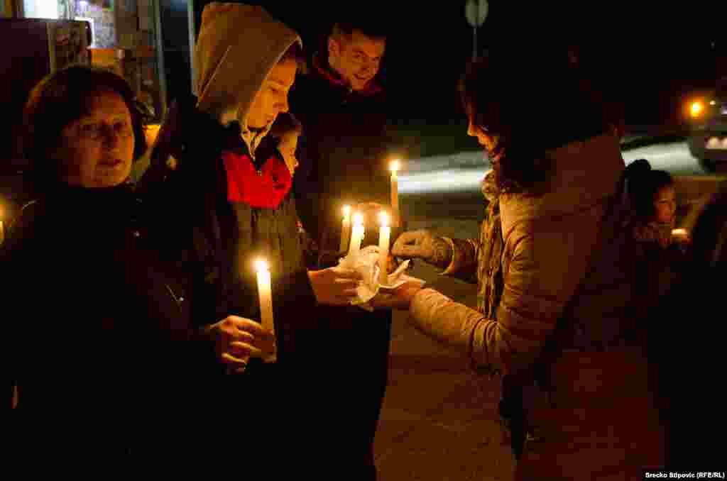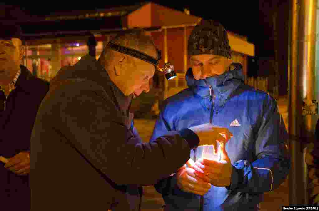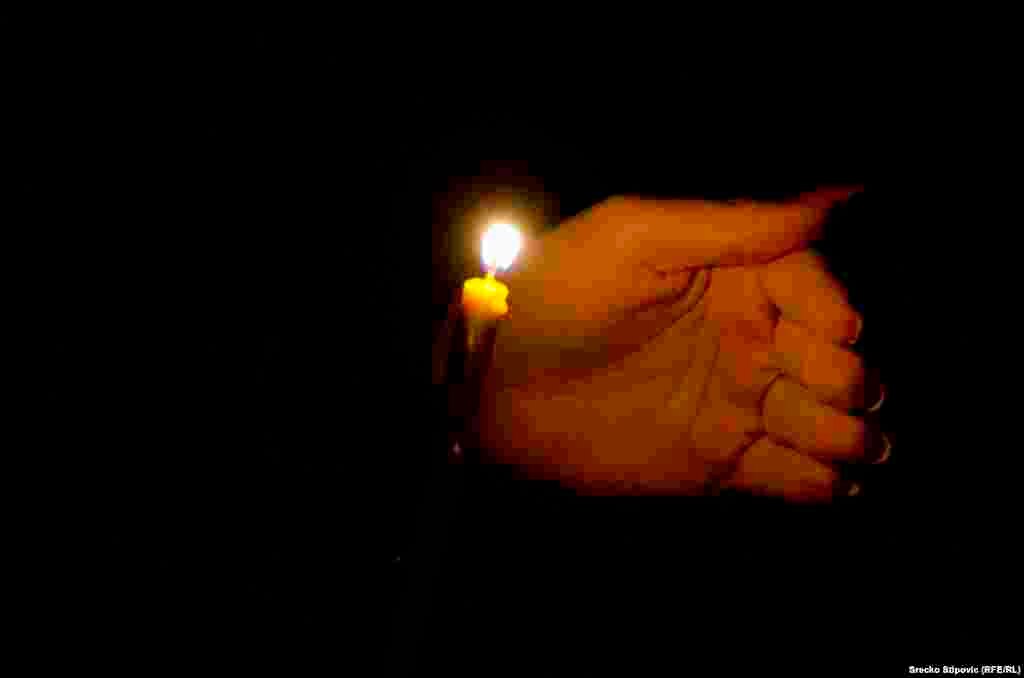 Oko 50 građana Viteza, organiziranih u udrugu "Tko šuti", u petak navečer je na gradskom trgu izvelo performans sa svijećama. U tom bh. gradu sve češće ne radi rasvjeta, a svjetiljke koje i rade ni blizu ne zadovoljavaju potrebe građana za noćnom rasvjetom. Vlast je pokušala štedjeti na svjetiljkama sa manje luksa pa je, izgleda, u tome i pretjerala. Foto: Srećko Stipović