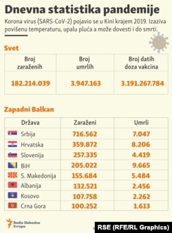 Susjednoj Bosni i Hercegovini donira 210.000 doza COVID-19 cjepiva. Također, po 20.000 doza bit će donirano Crnoj Gori, Kosovu, Sjevernoj Makedoniji, Albaniji, i Kirgistanu, izvijestio je premijer Andrej Planković.