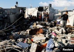 Palestinci traže tijela ispod ruševina kuće uništene izraelskim napadom, u Khan Younisu u južnom pojasu Gaze, 19. oktobra 2023.