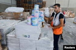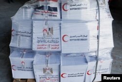 Radnici Crvenog polumjeseca sortiraju pakete humanitarne pomoći koja će biti podijeljena Palestincima, u Kan Junisu, jug Pojasa Gaze, 23. oktobra.