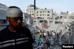 Palestinci pretražuju ruševine nakon izraelskih zračnih napada na Khan Younis, na jugu Pojasa Gaze, 25. oktobra.