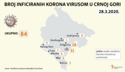 U Crnoj Gori virus korona potvrđen je kod još dvije osobe, čime broj zaraženih sada iznosi 84, saopšteno je iz Instituta za javno zdravlje.