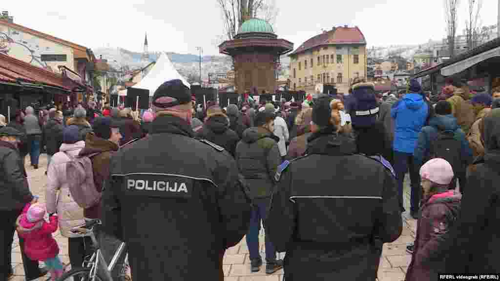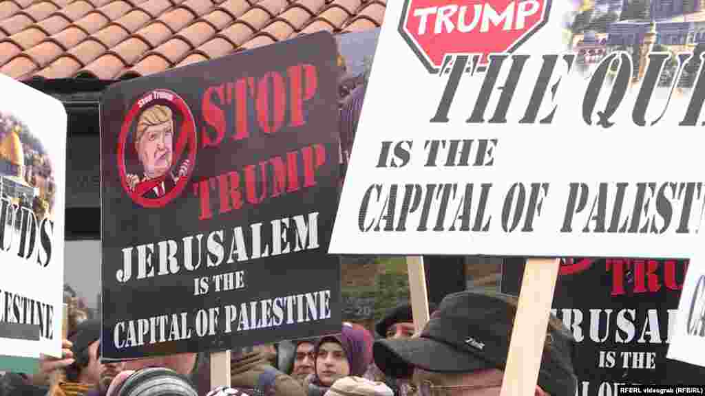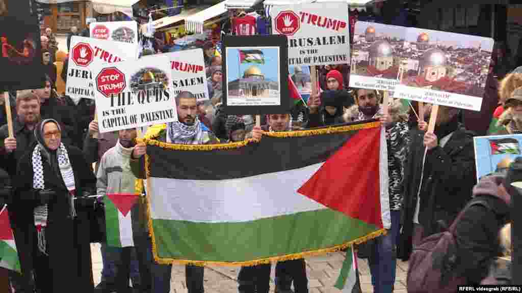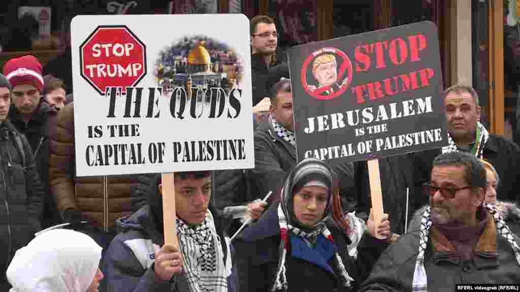 Stotinjak građana, uglavnom porijeklom iz Palestine, protestovali su u Sarajevu protiv odluke američkog predsjednika Donalda Trumpa da Jerusalem prizna kao glavni grad Izraela, dajući podršku pakestinskom narodu. Nosili su transparente ispisane na engleskom jeziku na kojima je pisalo “Jerusalem is the capital of Palestine” (Jerusalem je glavni grad Palesine), “Stop Trump” (Zaustavite Trumpa), “Down with Israel” (Dole Izrael) kao i slike jerusalemske džamije Al-Aksa.