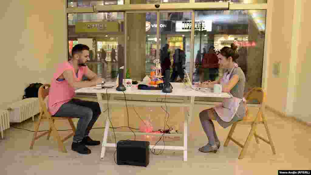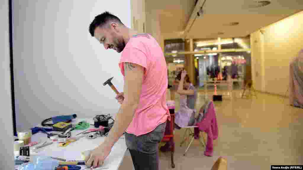 Galerija Kulturnog centra Beograda postala je privremeno boravište za umetnike Marinu Marković i Borisa Šribara koji će do 17. januara u njemu, u okviru izložbe „Kritičari su izabrali“, izraditi niz instalacija sa temom položaja umetnika u današnjem društvu. Foto: RSE / Vesna Anđić