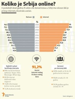 U poslednjih deset godina 25 odsto više domaćinstava u Srbiji ima računar, dok je pristup internetu dvostruko uvećan.