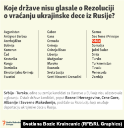 Rezolucija, kojom Generalna skupština UN-a zahteva od Kremlja da osigura "hitan, bezbedan i bezuslovan povratak sve ukrajinske dece koja su prisilno premeštena ili deportovana" u Rusiju, usvojena je 3. decembra.