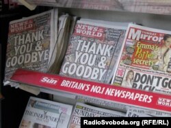 Fotografije police na kojoj se nalaze tabloidi i poslednji broj News of the World, London, 18. jul 2011.