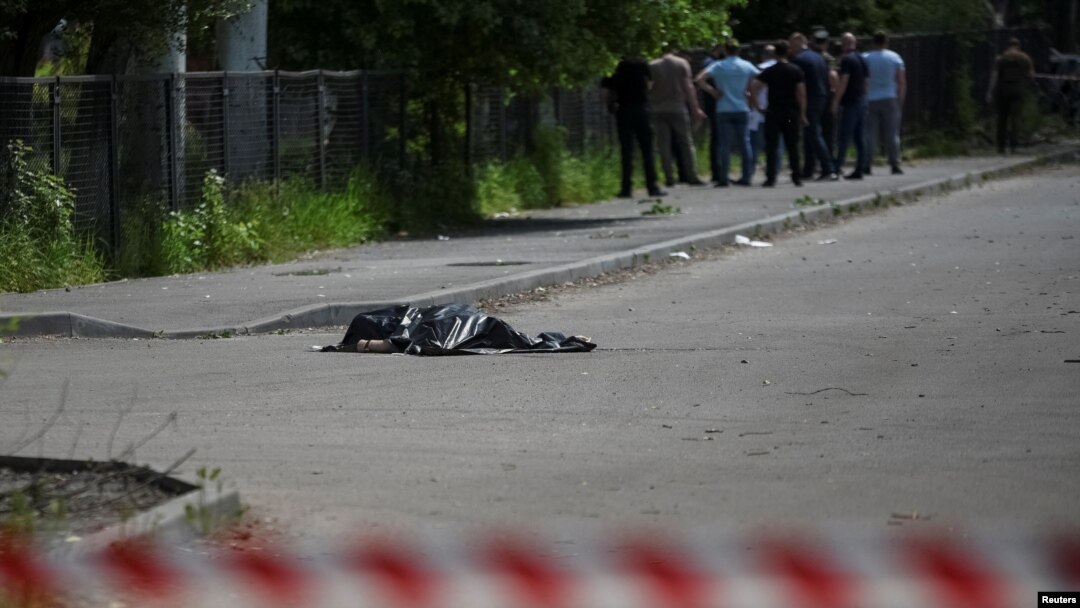 Tijelo osobe na ulici ispred bolnice u Dnjipru nakon ruskog udara, 26. svibnja